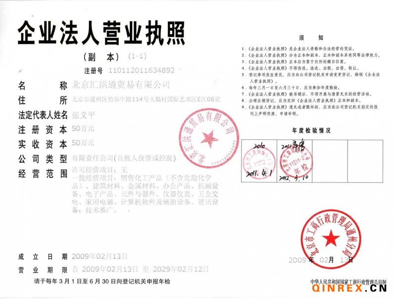 北京匯洪通貿(mào)易有限公司營業(yè)執(zhí)照