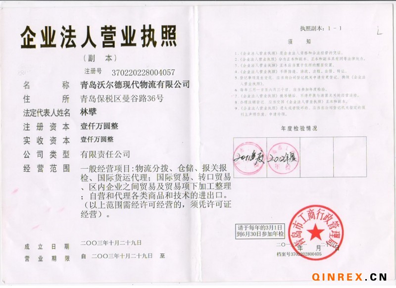 | 發(fā)證機(jī)構(gòu): | 青島市工商行政管理局 | 發(fā)證時間 : | 2003-10-29 |