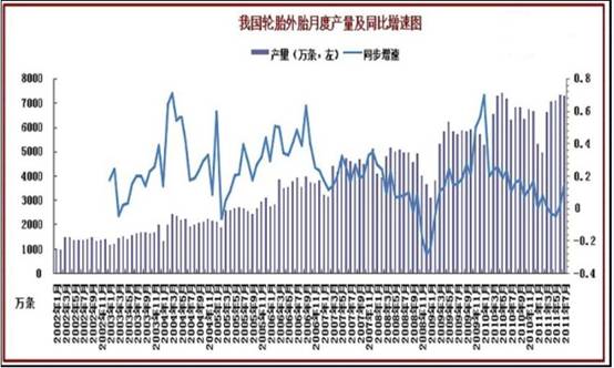 中國國家統計局9月13日公布的數據顯示,2011年8月中國輪胎產量較上年同期增長12%,至7219萬條。 但較7月產量下滑0.9%。統計還顯示,上半年輪胎行業實現利潤總額78.3億元,同比增長8.7%;受天然橡膠等原材料價格上漲影響,行業利潤率下降明顯,上半年銷售利潤率4.18%,同比下降0.73個百分點。