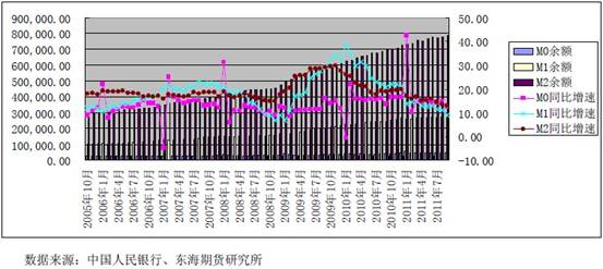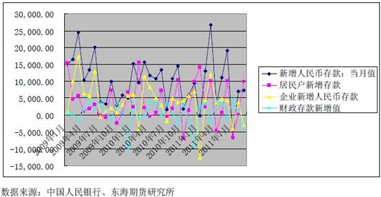 第二,9 月M1同比增速為8.9%,,不僅比上月末低2.3百分點,也大幅低于此前市場普遍預測的10.4%的水平。面對進一步下滑的M1 同比增速,我們認為M1 的下墜源于企業存款下降,意味著企業活力下降,預示工業增速將繼續回落。目前的企業存款增速已經遠低于08 年水平,而M1增速也離08 年的最低點不遠。