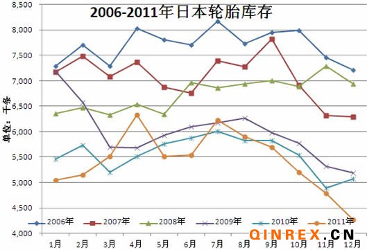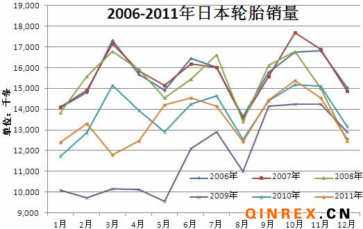 2011年,日本輪胎產量160926千條;銷售162178千條,產銷同比均下降2.2%。
