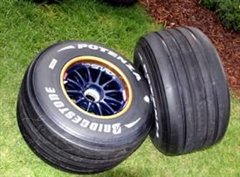 就像上圖的F1賽車輪胎,水平方面上有4條凹溝,這就是典型的條形花紋。但是,單純使用條形花紋的輪胎同樣也存在不少不足:較差的制動性能和驅動力,而且在負荷下容易出現開裂現象。這種花紋或者它們的變種和改良型的輪胎目前大部分會用于輕型客車和普通轎車以及摩托車的上。而不適用載重車和高性能(賽車的熱融胎除外)的車種。