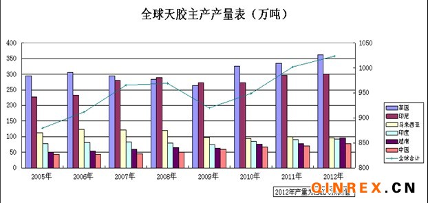 以希臘、西班牙、意大利為首的歐洲國家不斷曝出國家主權債務危機,波及歐洲經濟體系,再次打擊不理想的全球經濟。以原油為首的大宗商品出現(xiàn)了大跌。天膠亦無能幸免,追隨市場走勢。在天膠價格的持續(xù)走低中,膠農的種植收益必將下降,此舉或將挫傷膠農的種植積極性。。在印馬泰三國聯(lián)合托市的過程中,曾經出現(xiàn)過砍伐橡膠樹的惡性做法。目前在泰國的部分產膠區(qū),已有部分工人準備罷工方式來抗議政府對天膠價格提振力度不足的舉措。雖然ANRPC組織預計2012年全球天膠的產量將較2011上升1.5%。接下來的夏季是臺風來臨旺季,對海南地區(qū)的橡膠樹的影響比較大,以2011年為例,臺風就造成1.萬噸的橡膠減產,但是整體對于2011的產量只是拖緩增產速度。預計2012的全球橡膠產量仍將持續(xù)上行。
