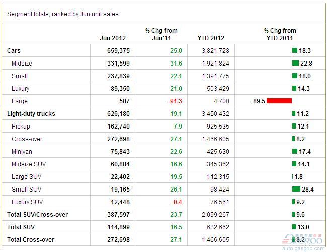 按照《華爾街日報(bào)》援引Motorintelligence.com的數(shù)據(jù),今年6月份,美國市場輕型車銷量為1,285,555輛,在去年6月份1,053,248輛的基礎(chǔ)上同比增長22.1%;今年上半年總銷量達(dá)到7,272,160輛,對比去年同期的6,332,566輛,同比增長14.8%。