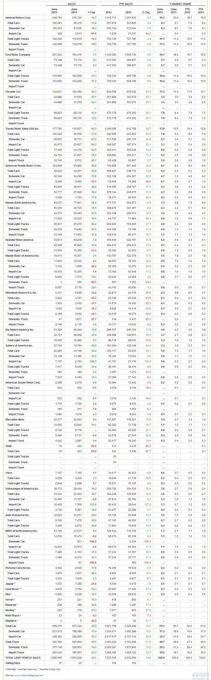Motorintelligence提供的各車企6月在美銷量數(shù)據(jù)