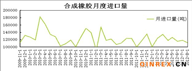 8月份,我國合成橡膠進口量為111,823噸,同比下降10.07%(去年同期124,351噸),環(huán)比(上月118467噸)下降5.61%。1-8月,我國累計進口合成橡膠3,530,812噸,較去年同期的3491656噸下降1.8%。這主要受8月份當月的輪胎廠家50%較低的開工率影響。
