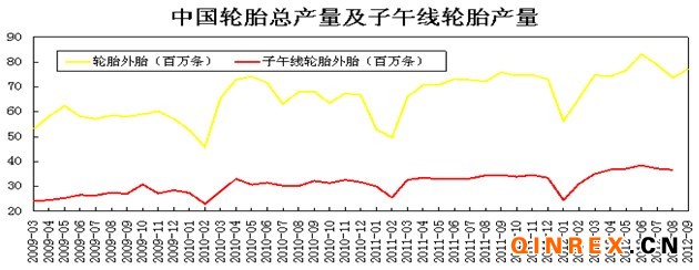 9月份中國輪胎產(chǎn)量為7722萬噸,環(huán)比增加360萬條,同比增加135萬條。預計10月份的輪胎產(chǎn)量將繼續(xù)增加,這是考慮特保案的結(jié)束,限產(chǎn)的輪胎企業(yè)的開工會比較積極,而停產(chǎn)的企業(yè)會陸續(xù)開工。