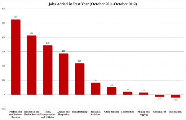 過(guò)去一年里,增加了1949K個(gè)工作崗位,大部分的增加來(lái)自于紙業(yè)和商業(yè)服務(wù)業(yè)(525K),教育和健康長(zhǎng)夜(414K)以及貿(mào)易、運(yùn)輸和公用事業(yè)(345K),政府部門的總就業(yè)在過(guò)去一年是下滑的。