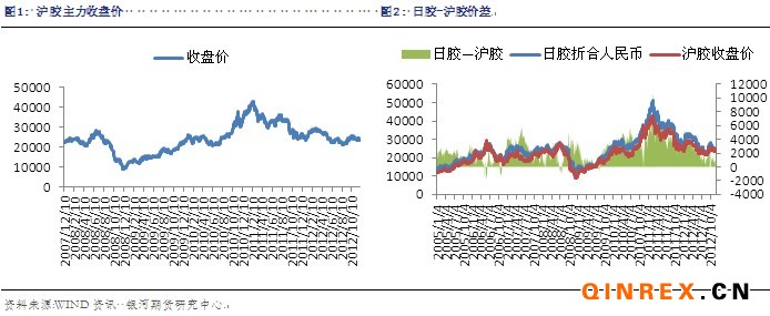 核心提示: 一、行情回顧 滬膠行情:本周滬膠主力1305下破24000后,持續低位整理,周一開于24475元/噸,本周最高漲至24475元/噸,最低跌...