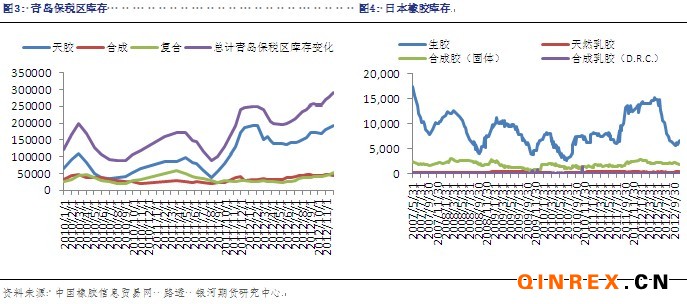 截止11月30日,青島保稅區橡膠庫存達29.05萬噸,較11月16日增加1.02萬噸。其中,天然橡膠增加0.62萬噸至19.3萬噸;合成膠減少0.08萬噸至4.49萬噸;復合膠增加0.48萬噸至5.26萬噸。