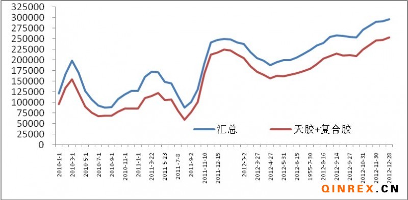本周外盤因圣誕間歇休市,滬膠唯我獨尊,日膠在日元貶值刺激下快速走高,滬膠也在周四一舉沖破26000整數關口,周五尾盤繼續發力,收盤于26180點,周漲幅4.89%。宏觀上看,本周及下周財政懸崖談判仍是焦點,歐洲方面較為平靜;合成膠反彈之后陷于沉寂,現貨報價跟隨期貨走高,