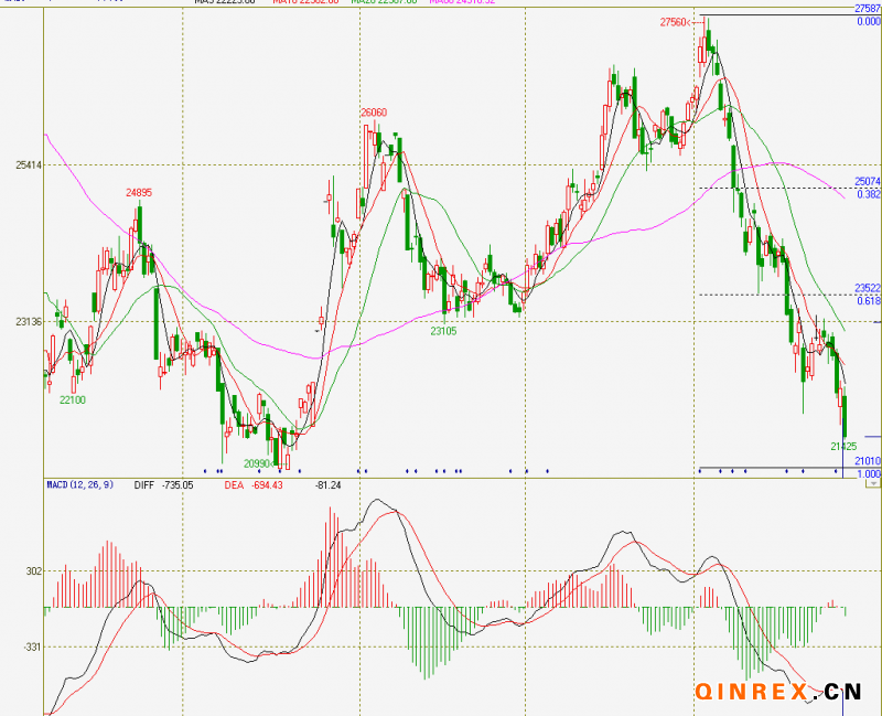 盤面走勢:今日國內金融市場普跌,滬膠主力1309合約再次報收長陰,盤中隨著空頭的積極增倉,價格探底21425點,尾盤收于21460點,日內跌幅達2.57%。滬膠依然籠罩在空頭氛圍中,搶左側收益風險太大,因而暫時不建議抄底。關注下一目標位21000點。