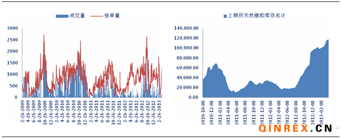圖13: 中橡膠網掛單量與成交量 圖14: 上期所庫存
