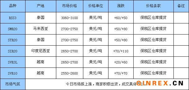 浙江地區天然橡膠市場,云南國營全乳膠市場報價在20500元/噸左右,海南國營全乳膠市場報價在20300元/噸左右,云南標二市場報價在19200元/噸左右,越南3L含17%稅在20300-20500元/噸左右,泰三煙片市場含17%稅在20400-20500元/噸左右,貿易商報盤小幅走高,下游即用即買,市場成交量有限。浙江地區順丁橡膠市場報價盤整,部分大慶、錦州、高橋順丁報價在14200-14400元/噸附近;藍德順丁報價在14000元/噸附近,福橡順丁在13400-13500元/噸附近,價格僅供參考,但受中油華南價格調漲及當地銷售公司尚未有所動作情況下,多數商家表示暫時觀望,等待行情進一步明朗,實際一單一談。
