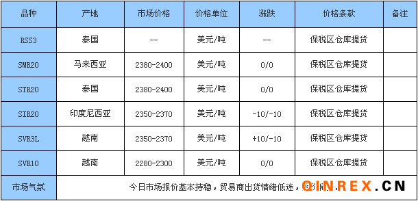 浙江地區(qū)天然橡膠市場,云南國營全乳膠市場報價在17800元/噸左右,海南國營全乳膠市場報價在17600元/噸左右,云南標二市場報價在16600元/噸左右,越南3L含17%稅在17900元/噸左右,泰三煙片市場含17%稅在18200元/噸左右,貿易商出貨不多,下游即用即買,市場成交量有限。上海地區(qū)高順順丁橡膠市場報價窄盤;少量大慶、高橋順丁膠報價在12700-13000元/噸附近;報價僅供參考,實單再談確定。
