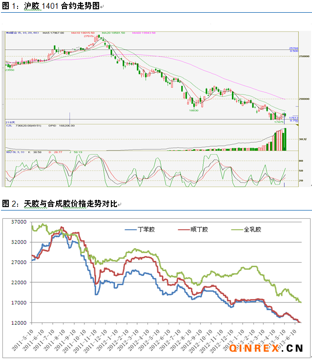 從盤面看,主力1401合約日內平開低走,未能延續前幾日弱勢反彈的格局,上漲動能難以為繼。預計短期內膠價或以區間震蕩為主,關注上方壓力位20日均線,19000點;下方支撐位17500點,17000點。
