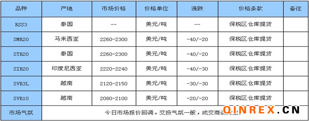 上海地區天然橡膠市場,云南國營全乳膠市場報價在16600元/噸左右,海南國營全乳膠市場報價在16400-16500元/噸左右,云南標二市場報價在15300-15400元/噸左右,越南3L含17%稅在16600-16900元/噸左右,泰三煙片含17%稅報價在16800-17200元/噸左右,貿易商報價回落,下游買入謹慎,市場成交需商談。上海地區順丁市場行情報價暫穩,部分大慶、高橋順丁報價在10500-10700元/噸左右,藍德順丁報價在10300-10400元/噸左右,銷售公司依舊限量開單,實單成交確定。