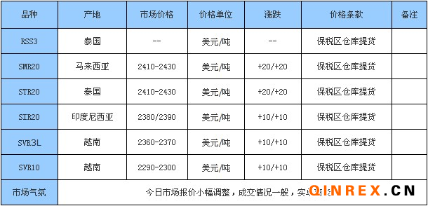 上海地區(qū)天然橡膠市場,云南國營全乳膠市場報價在19100元/噸左右,海南國營全乳膠市場報價在18600元/噸左右,云南標(biāo)二市場報價在17000元/噸左右,越南3L含17%稅市場報價在17900-18100元/噸左右,泰三煙片含17%稅報價在18700-19000元/噸左右,貿(mào)易商報價小幅調(diào)整,下游買入謹(jǐn)慎,市場成交需商談。上海地區(qū)順丁市場報價疲軟,少量大慶、藍(lán)德、獨山子順丁參考報價12000-12100元/噸附近,零星高橋順丁參考價格12400元/噸附近,揚子順丁報價11300-11400元/噸附近;報價僅供參考,市場買氣不足,實單成交確定。