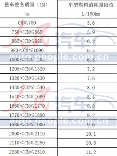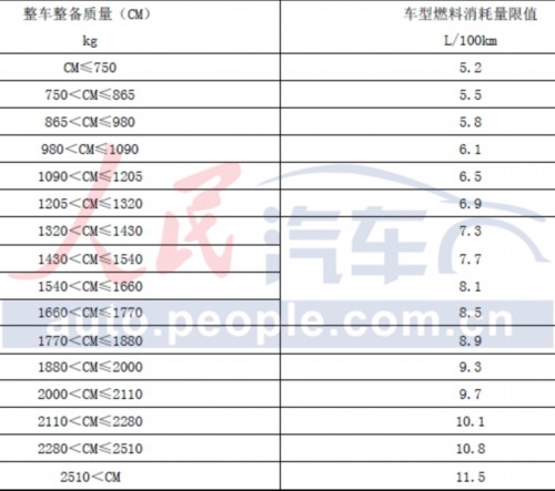 乘用車燃料消耗量的限值
