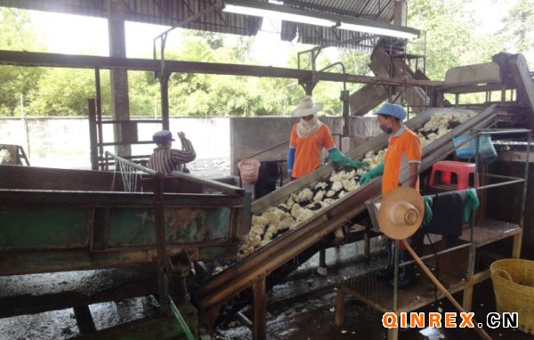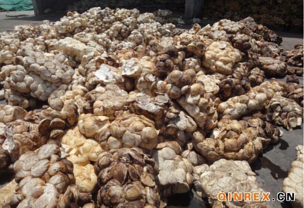 標膠加工工廠按照市場行情對外報原料采購價格,從膠農或者二盤商收購杯膠,放在堆場