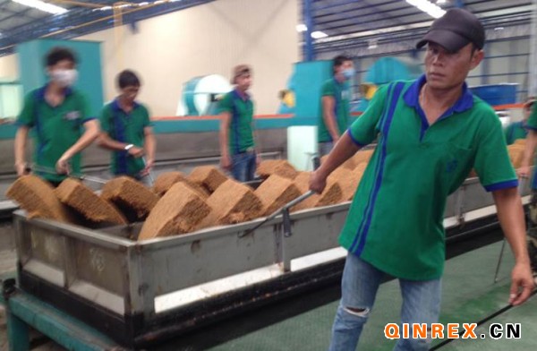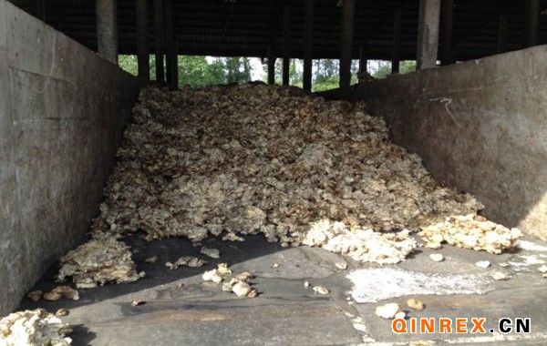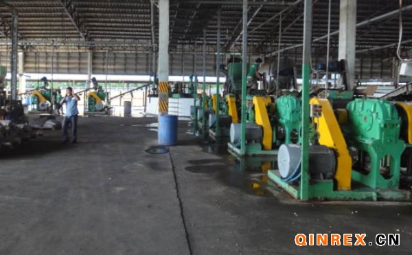 用縐片機壓成薄薄的縐片,在壓縐的過程中要用大量的清水不斷地沖 洗,將縐片中殘留的化學雜質等洗出來。