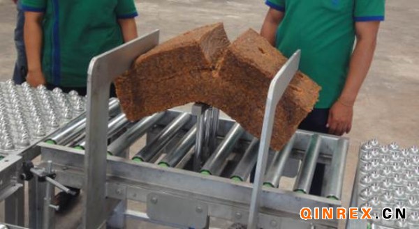 大約每六塊切一塊檢查中間是否烤透,有無雜質點。