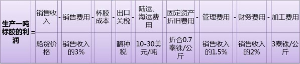 以上結果僅為在不考慮匯率波動及工廠套保等情況下對標膠生產的各模塊的估算,可大體反映出目前的標膠生產狀況。