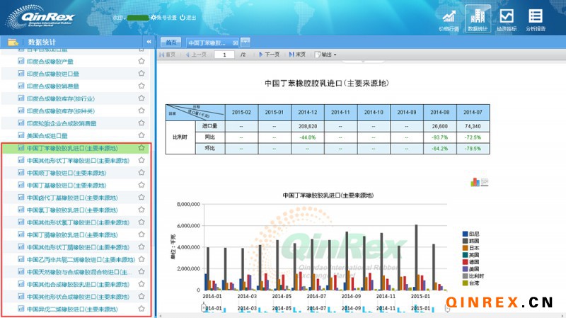中國橡膠信息貿(mào)易網(wǎng)“QinRex數(shù)據(jù)決策系統(tǒng)”于2015年5月26日,新增14項合成橡膠數(shù)據(jù)庫內(nèi)容。分別為: