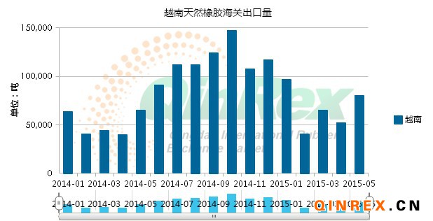 2015年1-5月越南橡膠出口量為330,059噸,同比攀升30%。