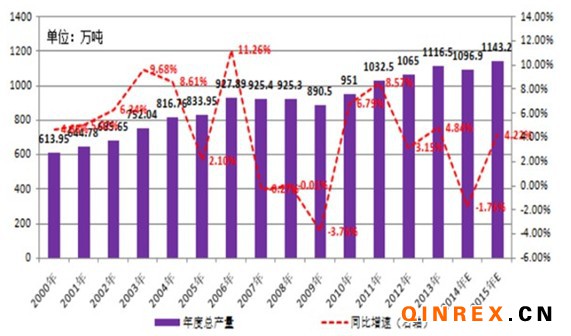 從全球供需角度來看,天膠價格長期低迷確實給產膠國產出帶來制約效應,供應壓力得到緩解,然而由供應端縮減形成的優勢尚不能完全填補需求端下降造成的劣勢,尤其當“中國需求”放緩后,供需矛盾進一步加重。此外,全球最大橡膠消費國中國預計今年橡膠進口量為425萬噸,雖然高于去年的410萬噸,但增速會放緩至3.7%,比去年的5%再度回落。進口增速回落的背后原因主要是預估今年中國橡膠消費增速會回落,由2014年的9%跌落至今年的4.6%。據IRSG的預測,2015年全球橡膠供應過剩量料為7.7萬噸,而2014年的供應過剩量為7.6萬噸。整體的供需過剩程度有所收窄,但仍處于供大于求格局。