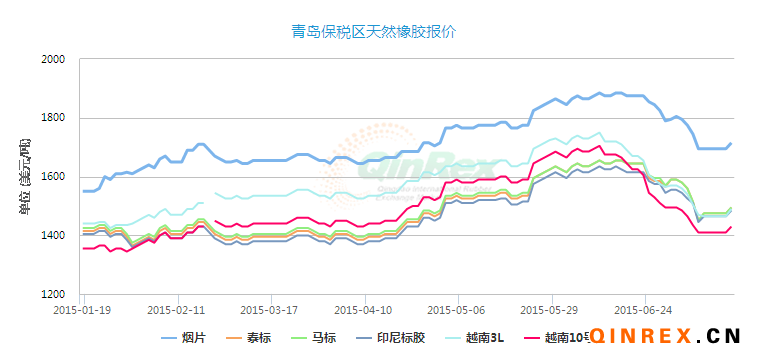 ●截至2015年7月中旬,青島保稅區(qū)橡膠庫(kù)存較上月底下降8%至10.67萬(wàn)噸,降幅較之前有所減緩。
