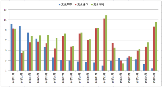 復(fù)合膠因其生膠含量高,無(wú)關(guān)稅,且具備融資屬性,而得到市場(chǎng)高度認(rèn)可,進(jìn)口量一直不斷增加,從青島保稅區(qū)的統(tǒng)計(jì)數(shù)據(jù)可以看出,整個(gè)2014年,復(fù)合膠庫(kù)存逐步下降,但是從2014年8月份復(fù)合膠新標(biāo)準(zhǔn)的消息傳出,國(guó)內(nèi)進(jìn)口量持續(xù)增加,到2014年12月,《復(fù)合橡膠通用技術(shù)規(guī)范》正式頒布,復(fù)合膠的相關(guān)市場(chǎng)數(shù)據(jù)均達(dá)到極點(diǎn)。一方面,國(guó)內(nèi)進(jìn)口量達(dá)到近 年的峰值11.27萬(wàn)噸,占青島港全年復(fù)合膠進(jìn)口量的12.8%。而另一方面,庫(kù)存卻明顯下降,因此,相對(duì)應(yīng)的市場(chǎng)對(duì)復(fù)合膠的消耗量達(dá)到歷史新高9.37萬(wàn)噸。主要是因?yàn)?ldquo;新標(biāo)準(zhǔn)”正式頒布,市場(chǎng)恐慌情緒加重,商家囤貨、惜售的行為使得大量的復(fù)合膠轉(zhuǎn)變?yōu)閲?guó)內(nèi)貿(mào)易商和下游工廠的庫(kù)存。而這一現(xiàn)象,在2015年6月份歷史重演,復(fù)合膠庫(kù)存急劇下降至僅有1.44萬(wàn)噸,而相應(yīng)的消耗量卻繼續(xù)維持在10.55萬(wàn)噸的高位。國(guó)內(nèi)商家對(duì)7月份新規(guī)實(shí)施以后的復(fù)合膠市場(chǎng)充滿(mǎn)了各種揣測(cè)、不安、謹(jǐn)慎、觀望……似乎唯一能帶來(lái)安全感的是“屯點(diǎn)兒貨”。