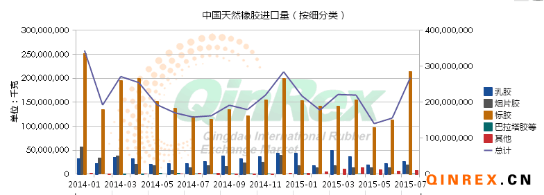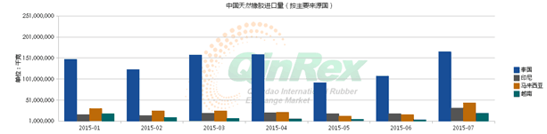 從2015年1-7月天然橡膠進口總量來看,截至今年7月中國進口天然橡膠139.63萬噸,同比下降約12%。據數據顯示,近幾月中國天膠進口量持續增長。