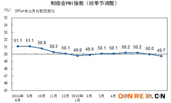 圖2、8月官方制造業PMI為49.7,創三年新低
