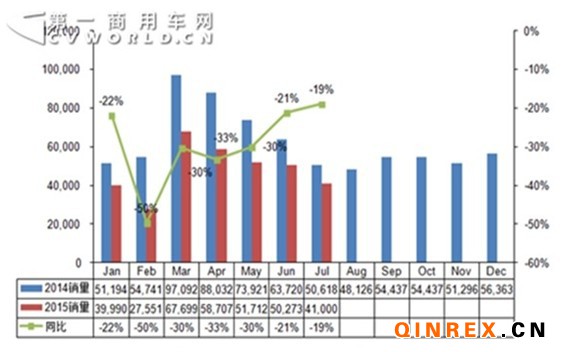 今年以來國內重卡行業陷入持續萎縮狀態,延續至7月依然在低谷中徘徊不前。雖說月度同比萎縮程度較上半年大幅縮窄,但主要是因為基數較低原因,終端需求依然未見改善跡象。據第一商用車網統計的數據顯示,第一商用車網最新獲悉,國內重卡市場7月份共約銷售各類車輛4.1萬輛,同比下降19%,環比下降18%。從今年1月至7月,重卡市場有四個月的月度銷量降幅超過30%(2月、3月、4月和5月);只有三個月的月度降幅在20%左右——1月份的 同比降幅是22%,6月份降幅是21%,7月份的同比降幅約19%。筆者認為,其實重卡市場5-7月的降幅縮窄只是表象,其主要原因并非市場回暖,而是因為去年同期的基數變小所致。反觀2015年,宏觀經濟持續減速,制造業進入不景氣的“新常態”,物流運輸市場低迷不前,運價跌無可跌,重卡旺季市場一直不旺,在“多座大山”壓迫之下,各家企業別說積極排產,不少企業連去年年底提前上牌的國三庫存車都沒有消化完,這也就造成了最近幾個月來重 卡市場每月的降幅都十分驚人。到了6、7月份,由于去年同期的銷量逐月走低,因此,今年6、7月份的同比降幅,表面上來看有不小的縮窄,7月份更是降到了19%;月度降幅縮窄只是同期數據基數問題,扭轉市場頹勢的根本因素并沒有得到改善。或許重卡市場的真正回暖,至少要等到四季度也不一定。