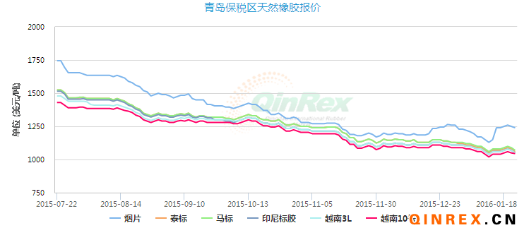 ●QinRex據東京1月21日消息,日本橡膠貿易協會最新公布的數據顯示,截至2016年1月10日,日本港口橡膠庫存下降2.5%至9,973噸。數據顯示,天然乳膠庫存從277噸降至275噸,固體合成橡膠庫存從1,382噸降至1,313噸,合成乳膠庫存維持在34噸。