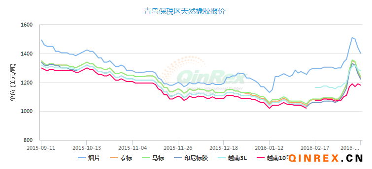 本周青島保稅區天然橡膠現貨價格先大漲后回落,市場交投氣氛不佳,貿易上多觀望心態,少量成交。