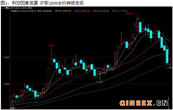 受益于前期市場炒作產(chǎn)膠國干旱天氣因素,割膠時點(diǎn)延遲,供應(yīng)預(yù)期未能如期回升,加之國內(nèi)黑色系始終處于上漲節(jié)奏帶動滬膠表現(xiàn)強(qiáng)勢。不過目前多空因素出現(xiàn)轉(zhuǎn)換,泰國大部分地區(qū)降雨量開始增多,雨水充沛將帶給膠農(nóng)開割動力,新膠上市將促使天膠供應(yīng)壓力大增,而國內(nèi)黑色系投機(jī)資金經(jīng)歷交易所風(fēng)險(xiǎn)“教育”以后,大部分撤離市場,期價(jià)上漲動力衰竭,開始回吐漲幅擠掉“泡沫”。在利空因素影響之下,國內(nèi)滬膠期貨也陷入持續(xù)回調(diào)的走勢中,主力1609合約期價(jià)重心不斷下移。