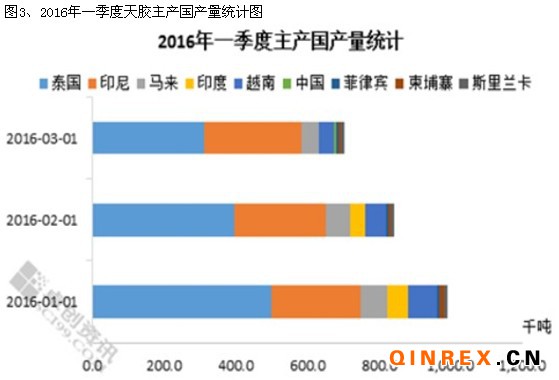今年全球厄爾尼諾現(xiàn)象要比去年偏嚴(yán)重,主要是產(chǎn)膠國不幸遭遇降雨偏少的旱情影響。而此前滬膠上漲很大程度上得益于開割預(yù)期延后,新膠產(chǎn)量不足,供應(yīng)階段性短缺帶來的利多支撐。據(jù)天膠生產(chǎn)國協(xié)會統(tǒng)計(jì)的數(shù)據(jù)顯示,2016年1-3月份主產(chǎn)國產(chǎn)量整體呈現(xiàn)遞減態(tài)勢,主要受季節(jié)性供應(yīng)淡季到來的影響。一季度主產(chǎn)國總產(chǎn)量合計(jì)253.97萬噸,其中1月份99.1萬噸,占一季度總產(chǎn)量的39%;其中2月份84.37萬噸,占一季度總產(chǎn)量的33%;其中3月份70.5萬噸,占一季度總產(chǎn)量的28%。