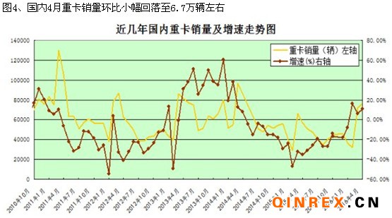 在低基數(shù)和樓市回暖預(yù)期推動下,步入2016年4月以來國內(nèi)重卡銷量繼續(xù)保持快速增長的勢頭,共約銷售6.7萬輛,比去年同期5.87萬輛增長14%。這已經(jīng)是重卡市場連續(xù)第三個月快速增長——2月份,重卡市場銷量同比增長 26.83%;3月份,重卡市場同比增長10.42%。連續(xù)三個月的兩位數(shù)增速已經(jīng)讓多數(shù)投資大感意外。其背后的原因主要有兩方面,首先、受國內(nèi)消費(fèi)小幅增長的拉動,公路物流業(yè)有微弱復(fù)蘇,進(jìn)而帶動了重卡尤其是牽引車和載貨車的需求增長。4月份的重卡行業(yè),同樣受到了這個利好因素的拉動。其次,2015年1月1日起柴油車排放標(biāo)準(zhǔn)由國三升級國四,2014年四季度出現(xiàn)重卡提前購買現(xiàn)象,進(jìn)而導(dǎo)致2015年上半年銷量有一定程度的走低。 2016年,該政策擾動因素不復(fù)存在,市場進(jìn)入正常發(fā)展通道,月度銷量出現(xiàn)同比增長屬于可預(yù)判范圍。基于上述兩方面因素考慮,二季度國內(nèi)重卡市場料將繼續(xù)維持偏樂觀的市場基調(diào)運(yùn)行,不過從增速來講,4月已然較此前有放緩跡象,后市難有超預(yù)期景象出現(xiàn)。