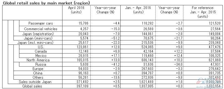 銷量方面,日產4月份在全球范圍內共售出397,109輛車,同比微增0.5%,連續第三個月實現增長。1-4月份日產累計全球銷量為1,837,005輛,同比微增0.3%。