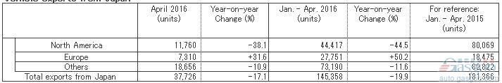 出口方面,4月份日產從日本本土向海外共出口了37,726輛新車,同比下跌17.1%;1-4月累計出口量同比下跌19.9%至145,358輛。(來源:蓋世汽車)