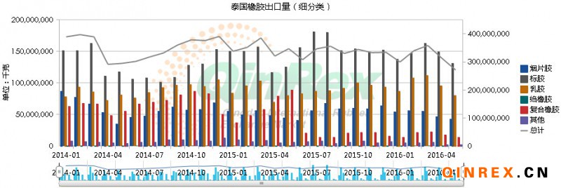 歷史數據請關注“QinRex數據決策系統-泰國橡膠出口量(細分類)”