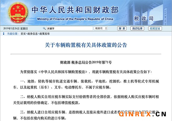 日前,財政部和國家稅務總局聯合發布《關于車輛購置稅有關具體政策的公告》(以下簡稱“《公告》”)顯示,自7月1日起,納稅人購買自用應稅車輛實際支付給銷售者的全部價款,依據納稅人購買應稅車輛時相關憑證載明的價格確定,不包括增值稅稅款。納稅人進口自用應稅車輛,是指納稅人直接從境外進口或者委托代理進口自用的應稅車輛,不包括在境內購買的進口車輛。