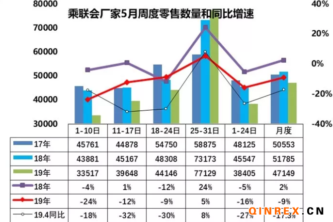乘聯會初步數據顯示,5月全國乘用車零售逐步回升。