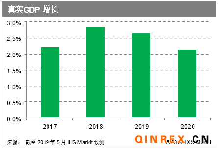 美國經濟的基本面依然良好,IHS Markit預測2019年GDP增速為2.7%,2020年增速為2.1%。