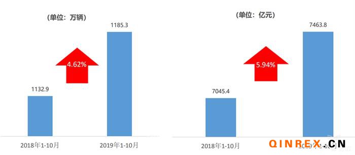 2019年1-10月,全國二手車累計交易量為1185.3萬輛,同比增長4.62% ;全國二手車累計交易金額為7463.8億元,同比增長5.94%。