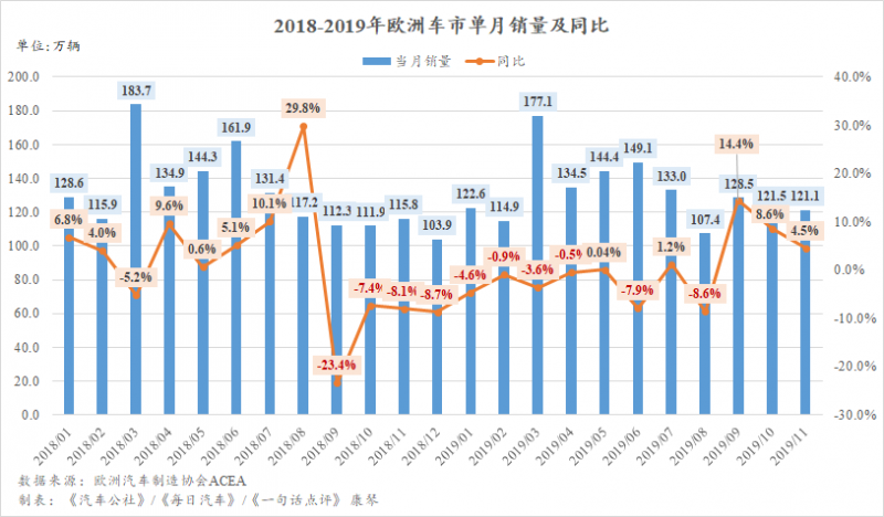 2018年,歐盟和歐洲自由貿易聯盟的成員國共計售出1562.5萬輛,也就是說只要12月的銷量超過107.6萬輛,今年的歐洲就能迎來增長??紤]到去年12月都能達103.9萬輛,而今年9月以來的走勢皆好于去年,因此歐洲要實現增長問題并不大。