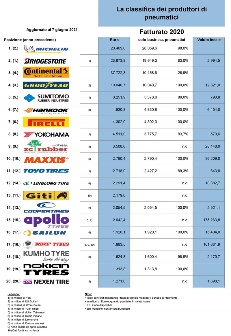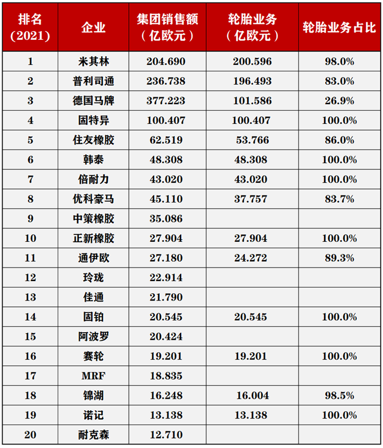 最近,海外媒體發布了一份最新的2021全球輪胎TOP20榜單,數據來自于企業2020年全年的銷售成績。
