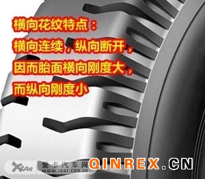 這種花紋的特點(diǎn)是胎面橫向連續(xù),縱向斷開,因而胎面橫向剛度大,而縱向剛度小。故輪胎抗滑能力呈現(xiàn)出縱強(qiáng)而橫弱,汽車以較高速度轉(zhuǎn)向時(shí),容易側(cè)滑;輪胎滾動阻力也比較大,胎面磨損比較嚴(yán)重。這種型式花紋適合于在一般硬路面上、牽引力比較大的中型或重型貨車使用。